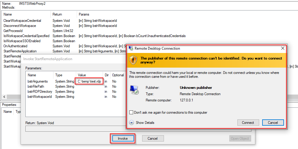 After entering your chosen arguments, click Invoke to execute the function with the provided input arguments. Did we just open an .RDP file in an mstsc.exe process?